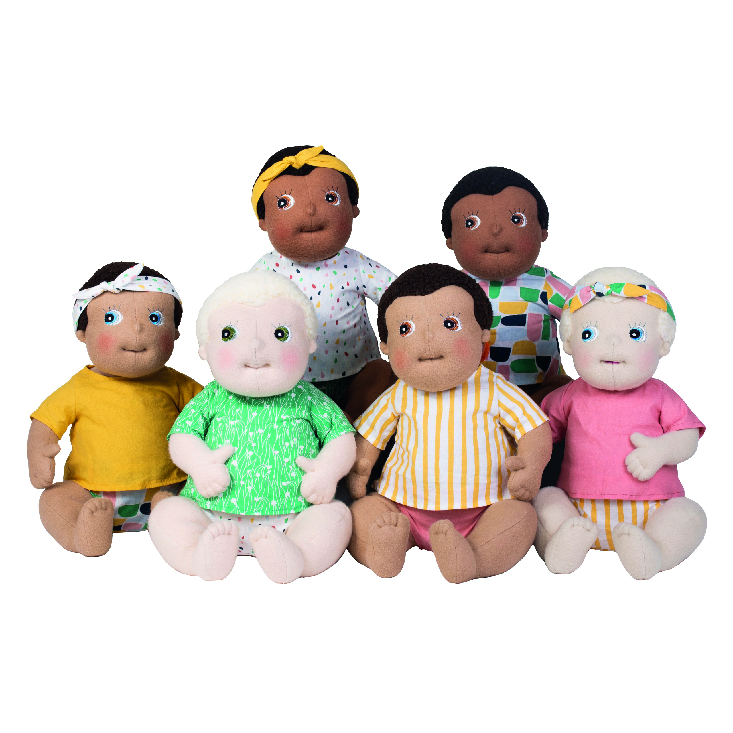 Realistische, kuschelige Babypuppen aus angenehmem Stoff, der waschmaschinengeeignet ist. Alle Puppen können Daumen lutschen und werden inklusive Kleidung geliefert.