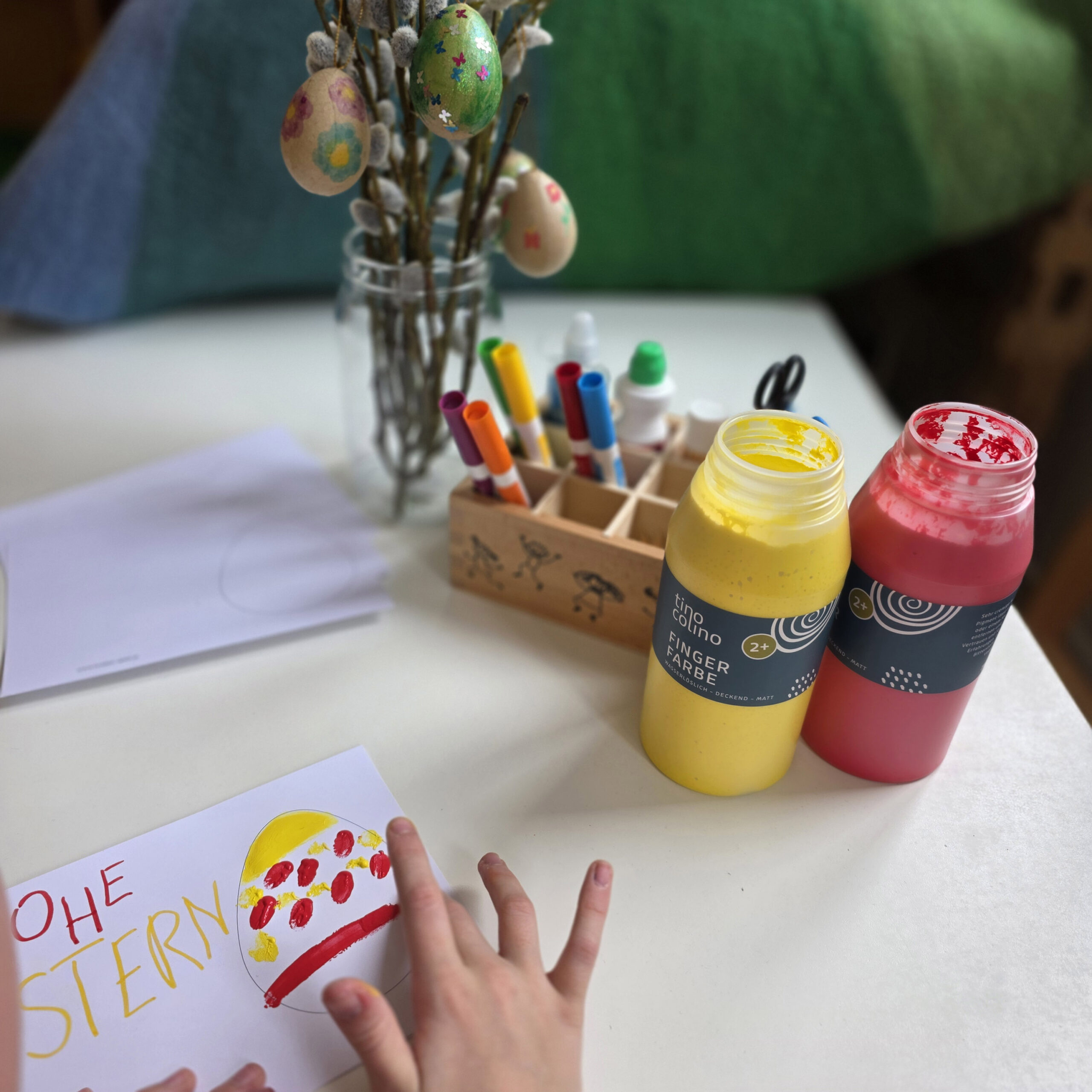 | Varianten | Blau, Rot, Gelb, Grün, Violett, Orange, Weiß, Schwarz, Braun, Pink, Fingerfarben-Set |